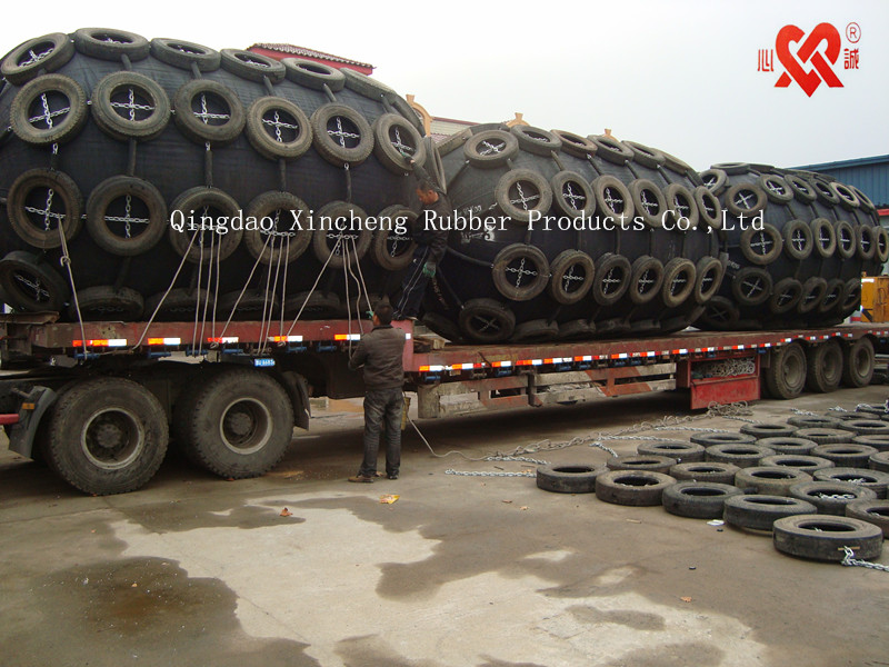 護(hù)套式充氣橡膠護(hù)舷(靠球)是“依據(jù)ISO17357(Net Type Pneumatic Fenders)開發(fā)生產(chǎn)的一種具有高強(qiáng)度、高耐磨性的護(hù)舷系統(tǒng)。尺寸為:D1.0m x L1.5 ~ D3.3m x L6.5m。其突出的外觀特點(diǎn)就是:充氣護(hù)舷的本體外由一張輪胎鏈條網(wǎng)包裹,從而延長(zhǎng)了護(hù)舷本體的使用壽命。所使用輪胎全部經(jīng)過特殊處理,使表面美觀;其鏈條全部經(jīng)過熱鍍鋅處理。
